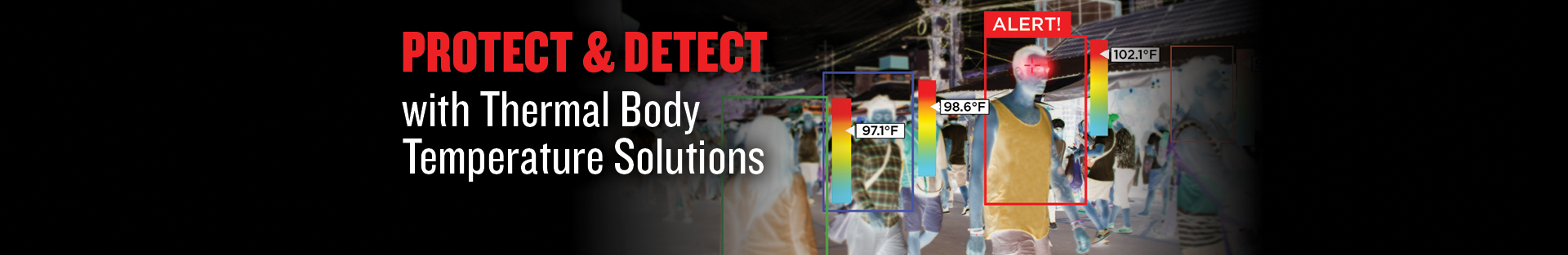 We offer several different thermal body temperature detection solutions that can read single persons or up to 30 people at a time in a designated area. These thermal imaging solutions help you measure temperature at a safe distance and get instant feedback. Human body temperature cameras are new to the fight against Coronavirus and our team is here to help you find the right solution to protect your employees and customers.